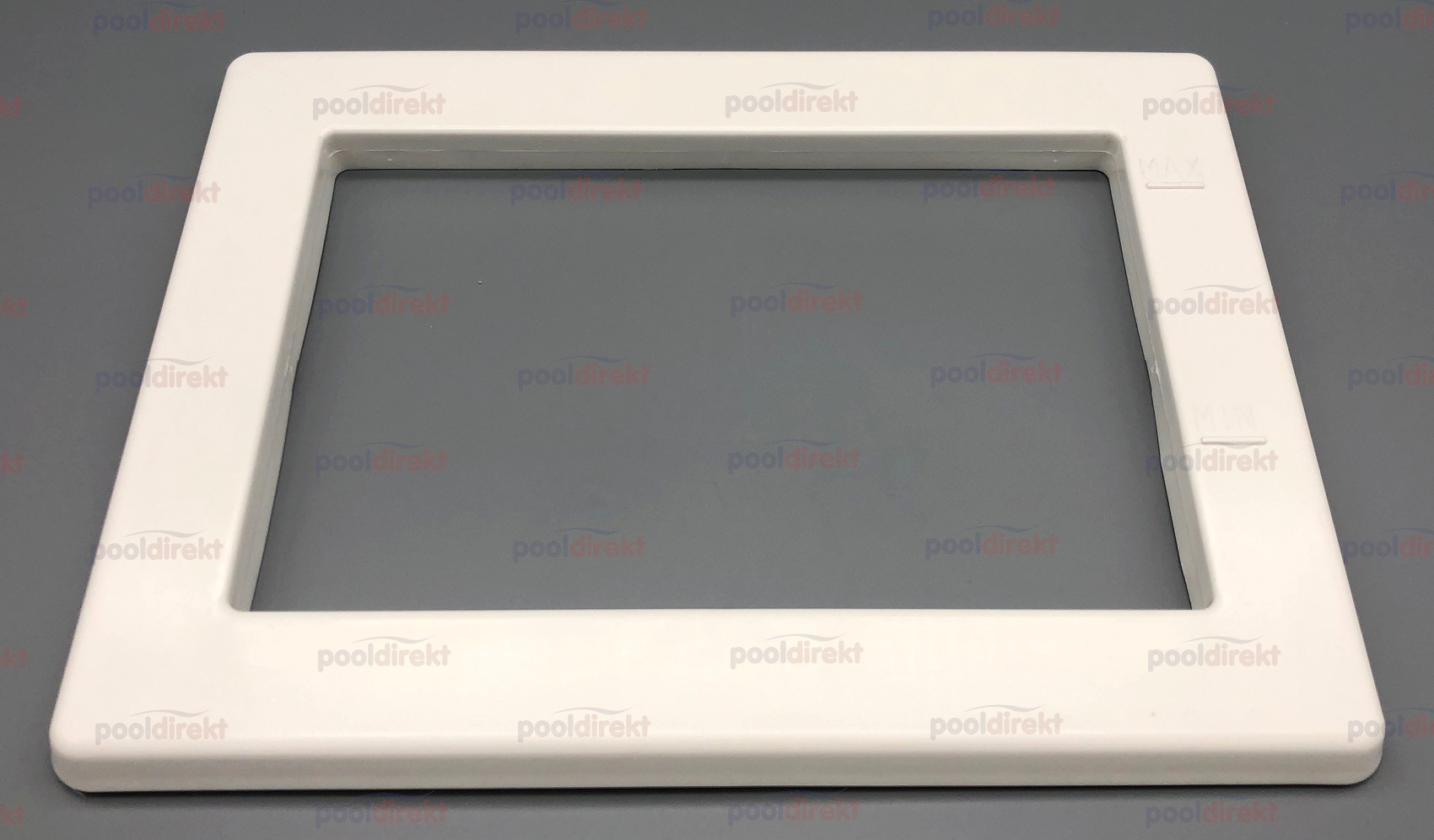 Skimmerblende weiß, beige (sand), hellgrau oder dunkelgrau (anthrazit) aus ABS passend für Oberflächensauger ABS Neptun. Dieser Abdeckrahmen wird einfach auf den Flansch aufgesteckt.