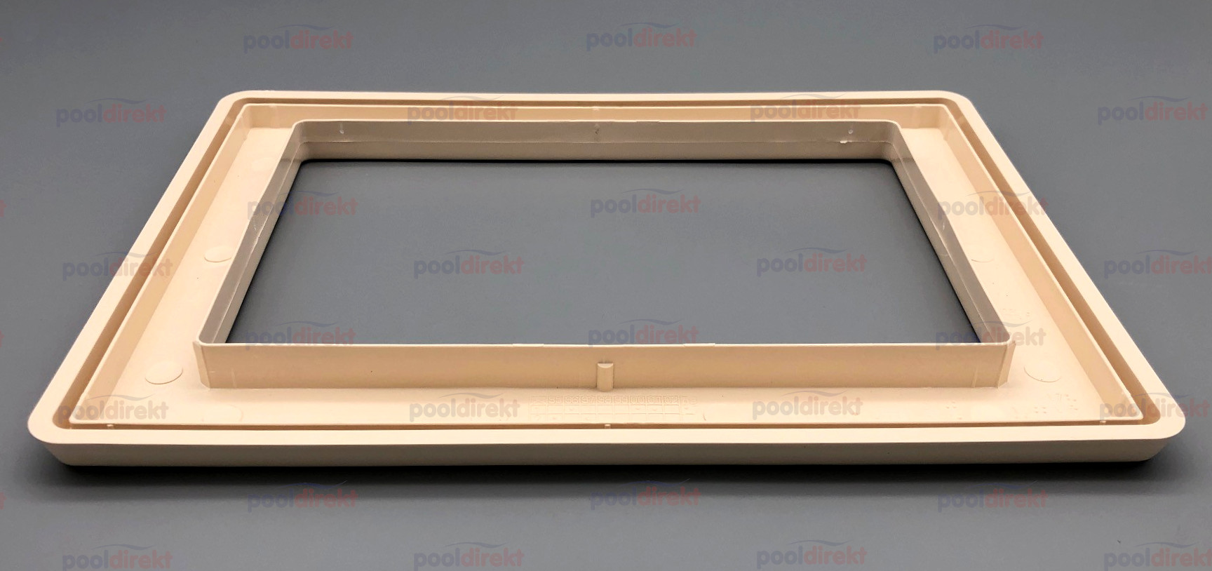 Skimmerblende beige (sand) aus ABS passend für Oberflächensauger ABS Neptun. Dieser Abdeckrahmen wird einfach auf den Flansch aufgesteckt.