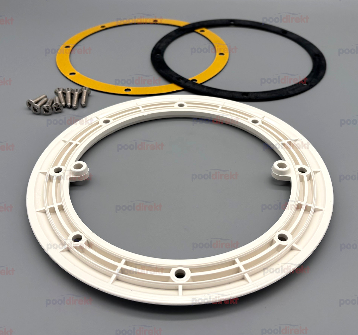 Flansch mit 2 Dichtungen, Flanschschrauben in 4 Farben für den Astral KS Bodenablauf als Ersatzteil. Der originale Deckel passt nicht in den Ersatzteil-Flansch, bestellen Sie daher den Deckel dazu - siehe Zubehör! Achten Sie auf die Nummer auf der Rückseite: 01467-0001.