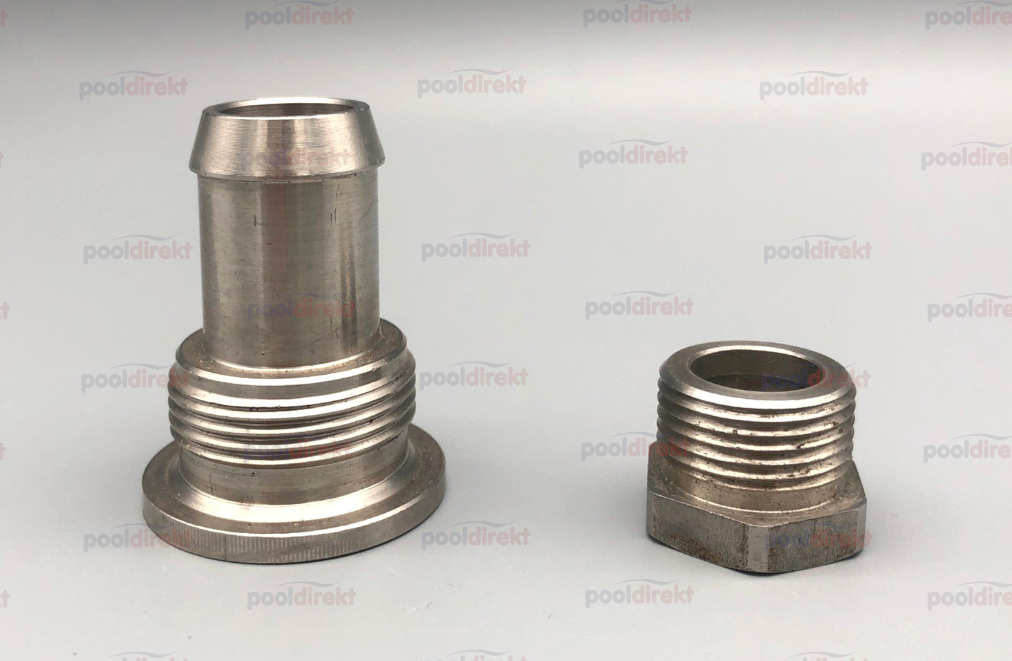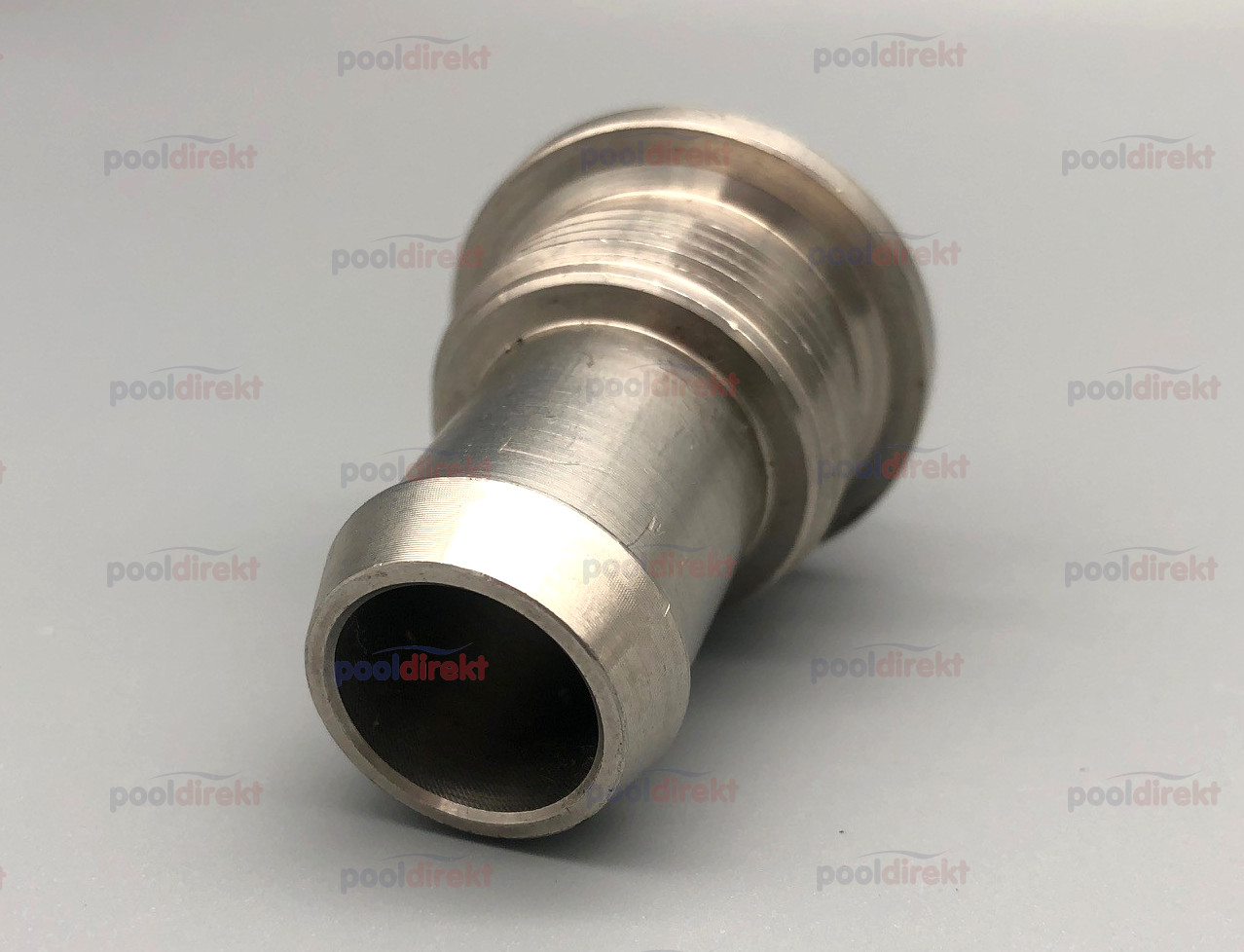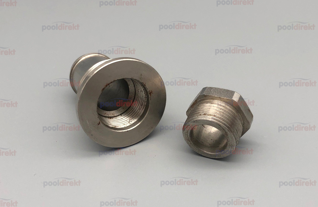 Edelstahltülle für Dapra Scheinwerfer, Typ Bolzano aus Edelstahl V4A, alte Version. Wird von innen nach außen in das Gehäuse (Einbaunische) geschraubt, um das Stromkabel dann mittels der beiliegenden Schraube (von innen zu schrauben) abzudichten.