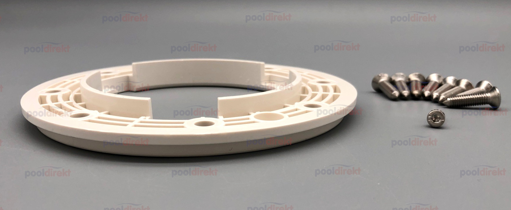 Ersatzteil für den Astral Unterwasserscheinwerfer MIDI bestehend aus Flansch, 8 Flanschschrauben und 1 Imbusschraube.