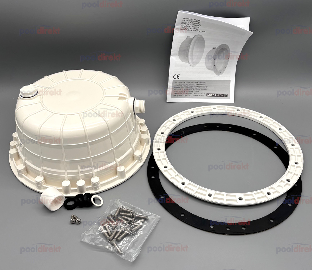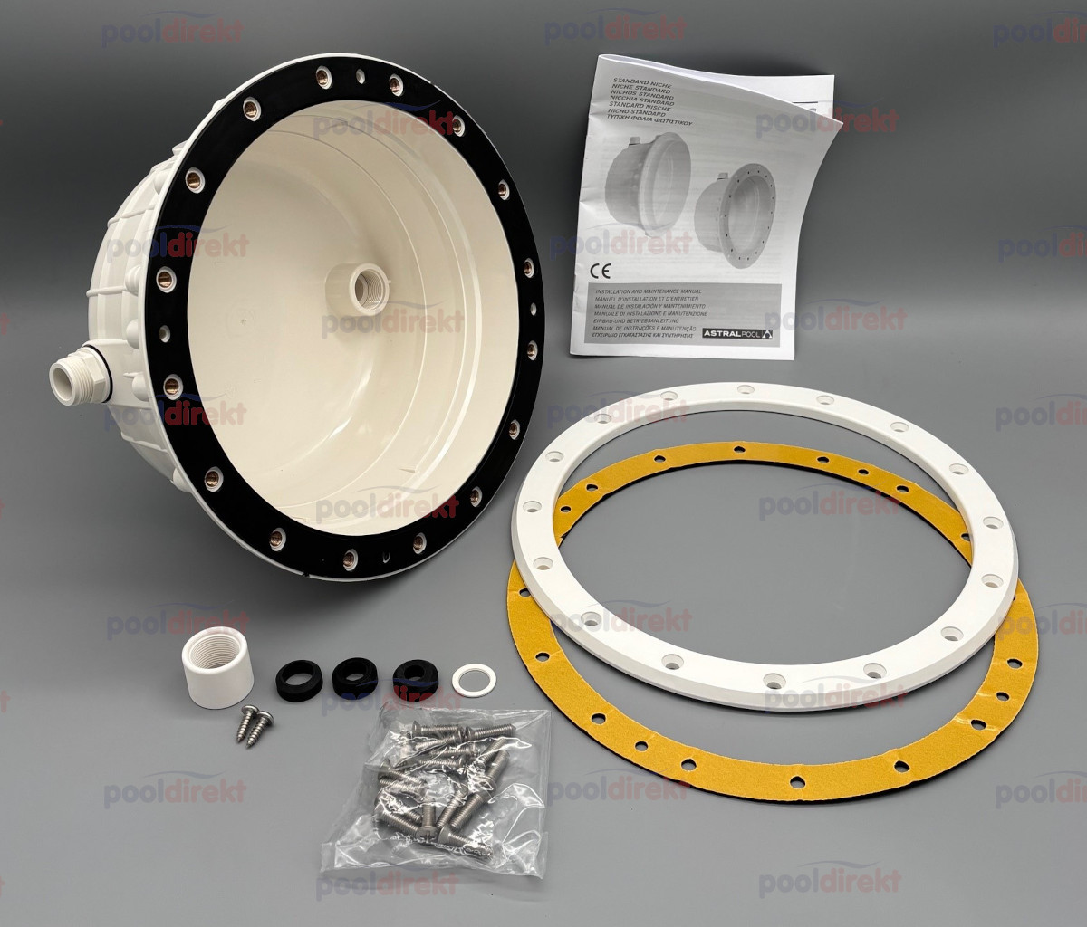Astral ABS-Nische für Pool Scheinwerfer im Folienbecken mit einem Innendurchmesser von 230 mm, kompatibel mit Astral Lumiplus FlexiNiche- und PAR56 Birnen.