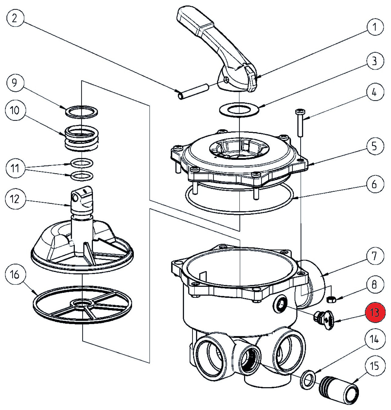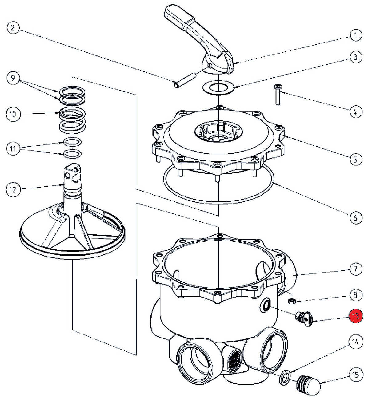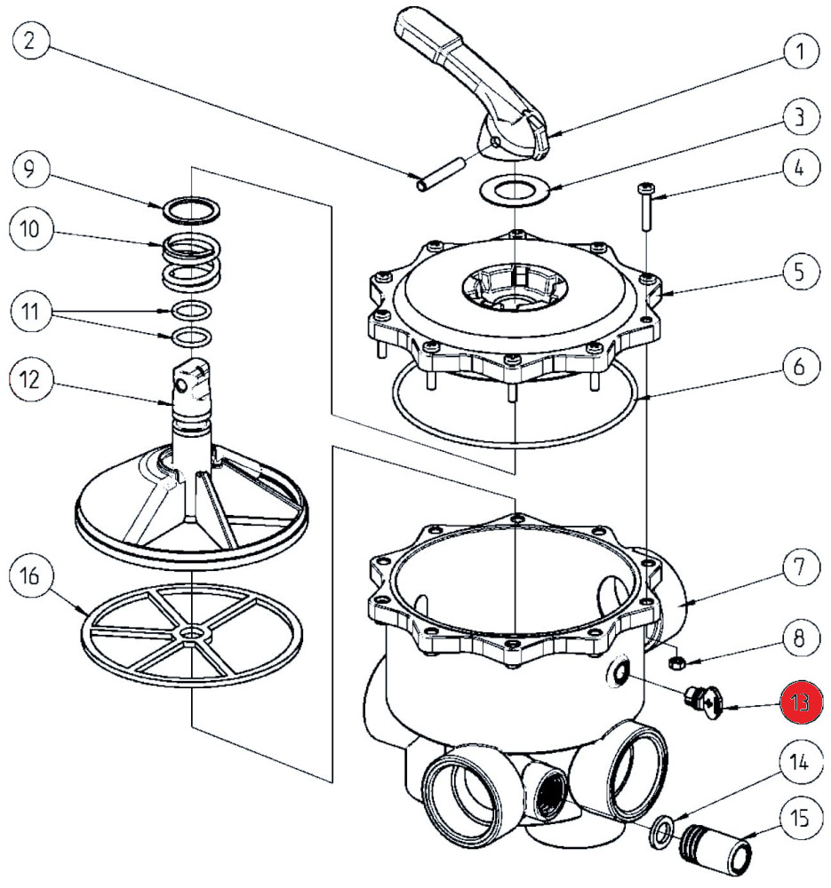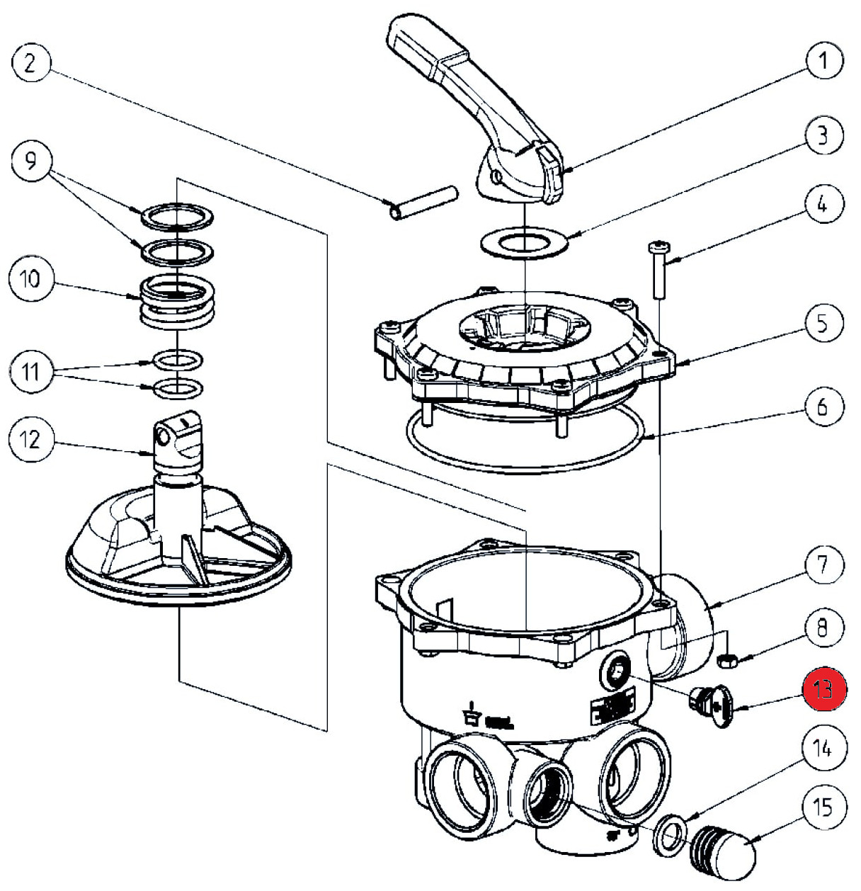 Praher Side Mount 6-Wege-Ventil All Open (130753) Alle Anschlüsse mit 1 1/2" Innengewinde max. 3,5 bar Anschlüsse: Pumpe: 1 1/2" Innengewinde Rückspülung: 1 1/2" Innengewinde Düse: 1 1/2" Innengewinde Top: 1 1/2" Innengewinde Bottom: 1 1/2" Innengewinde           ___