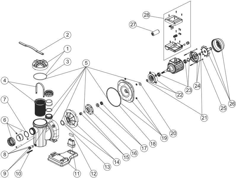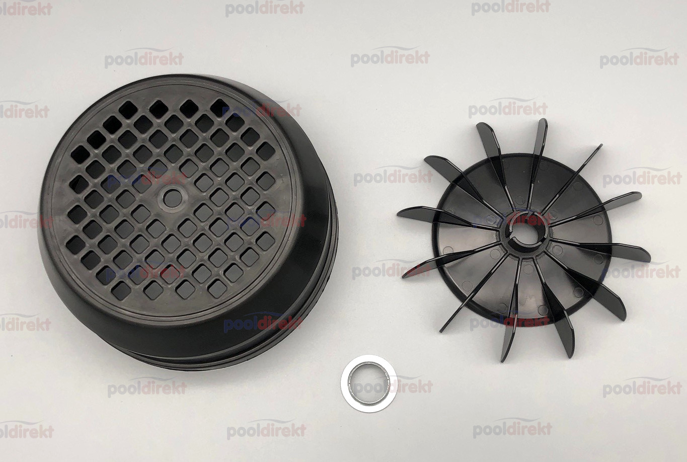 Ventilator mit Deckel als Ersatzteil für Astral Victoria Filterpumpen alt mit 0,60 - 0,78 kW, sowie Astral Sena mit 0,56 - 0,63 kW.
