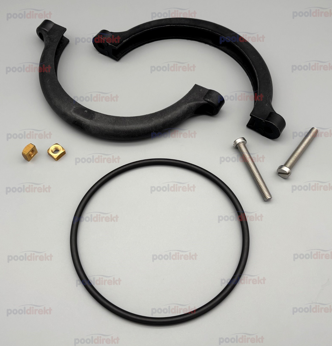 Spannring bestehend aus 2 Teilen, inkl. Schrauben, Muttern und O-Ring für Filterkessel Magic und BWT P-FS 500.