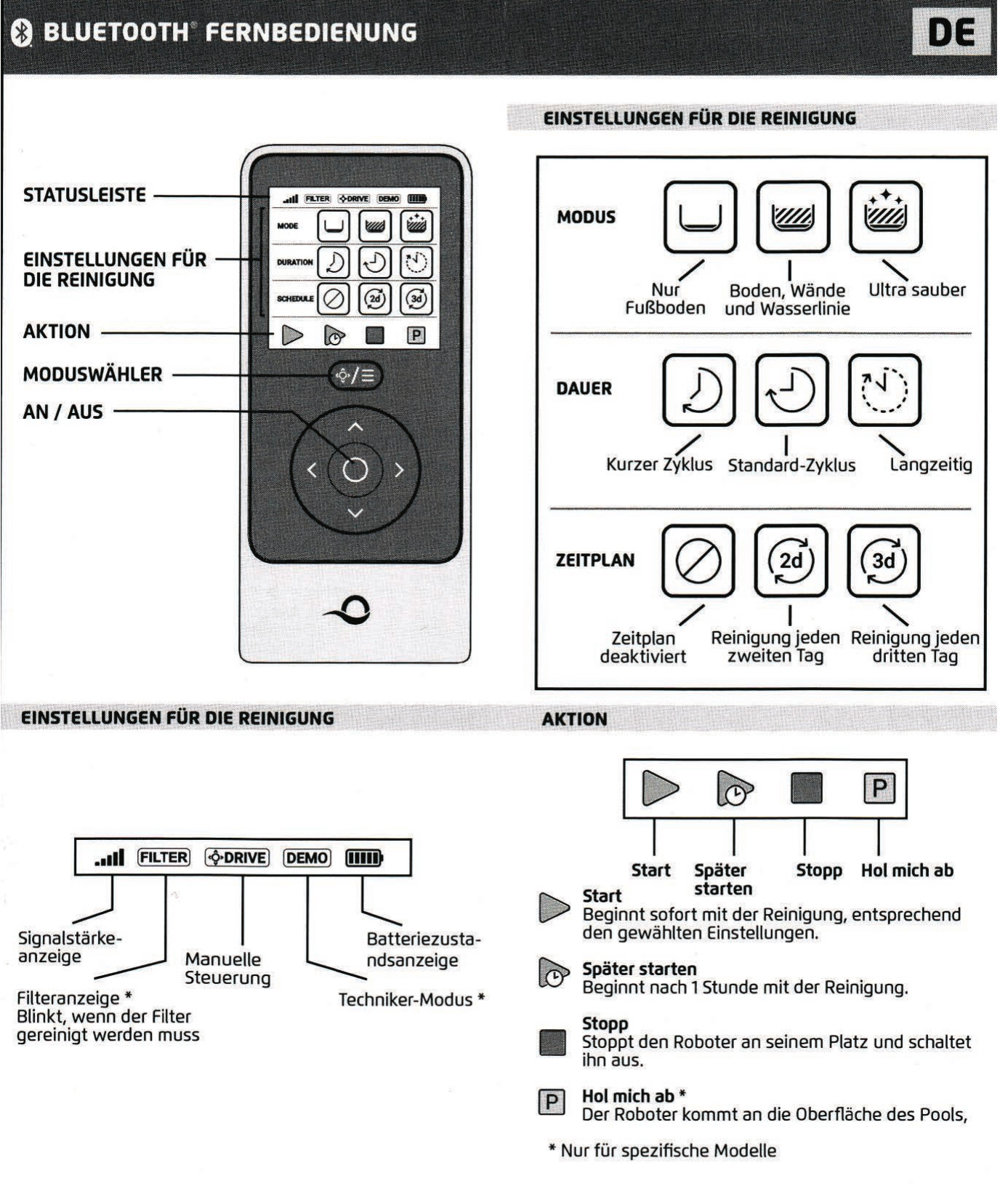 Zum Verbinden der Fernbedienung stellen Sie sich neben den IOT Trafo Ihres Poolroboters. Sobald Sie die Verbindung hergestellt haben, können Sie Ihren Roboter im Becken dirigieren und Zeitprogramme einstellen.