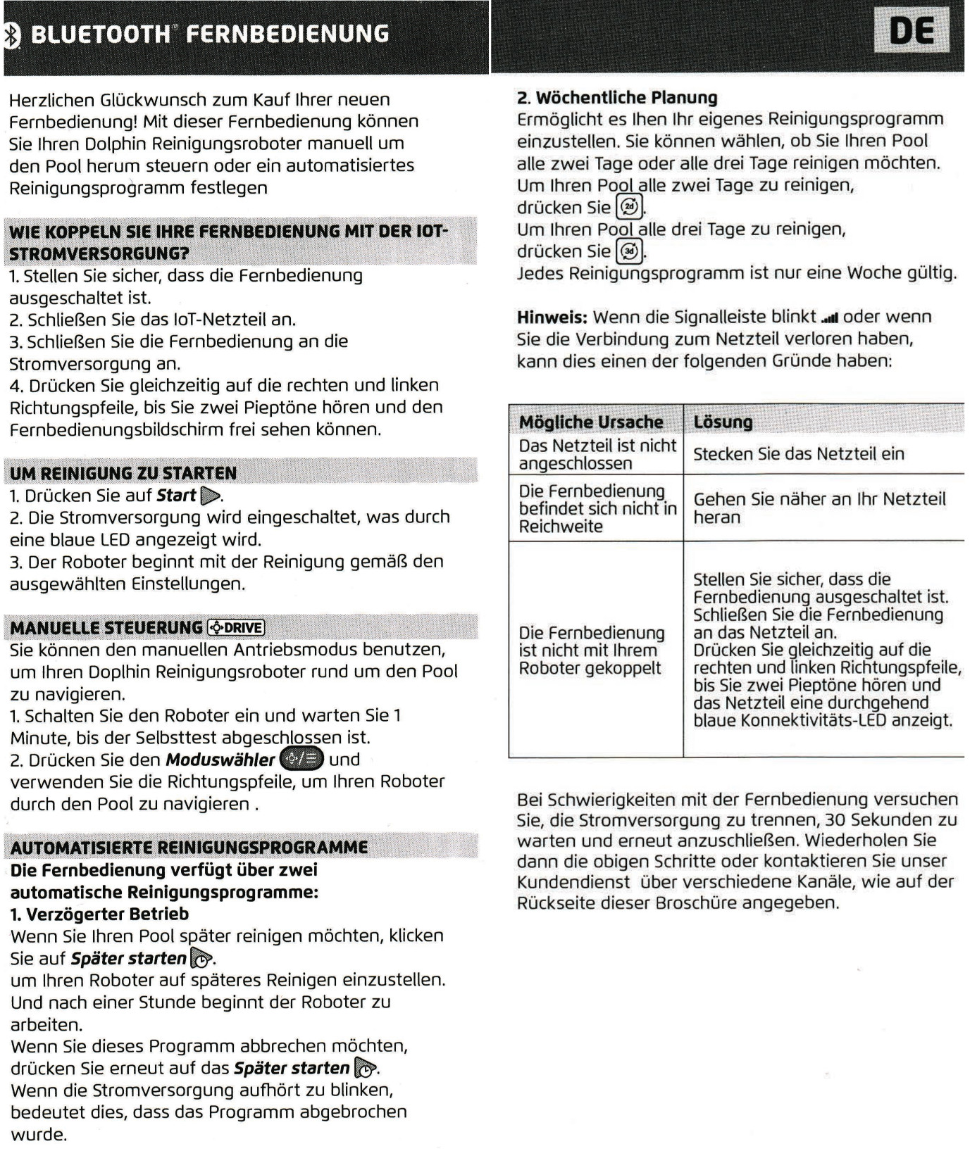 Bluetooth Fernbedienung IOT als Ersatzteil für diverse Dolphin Poolroboter ab Baujahr 2020.