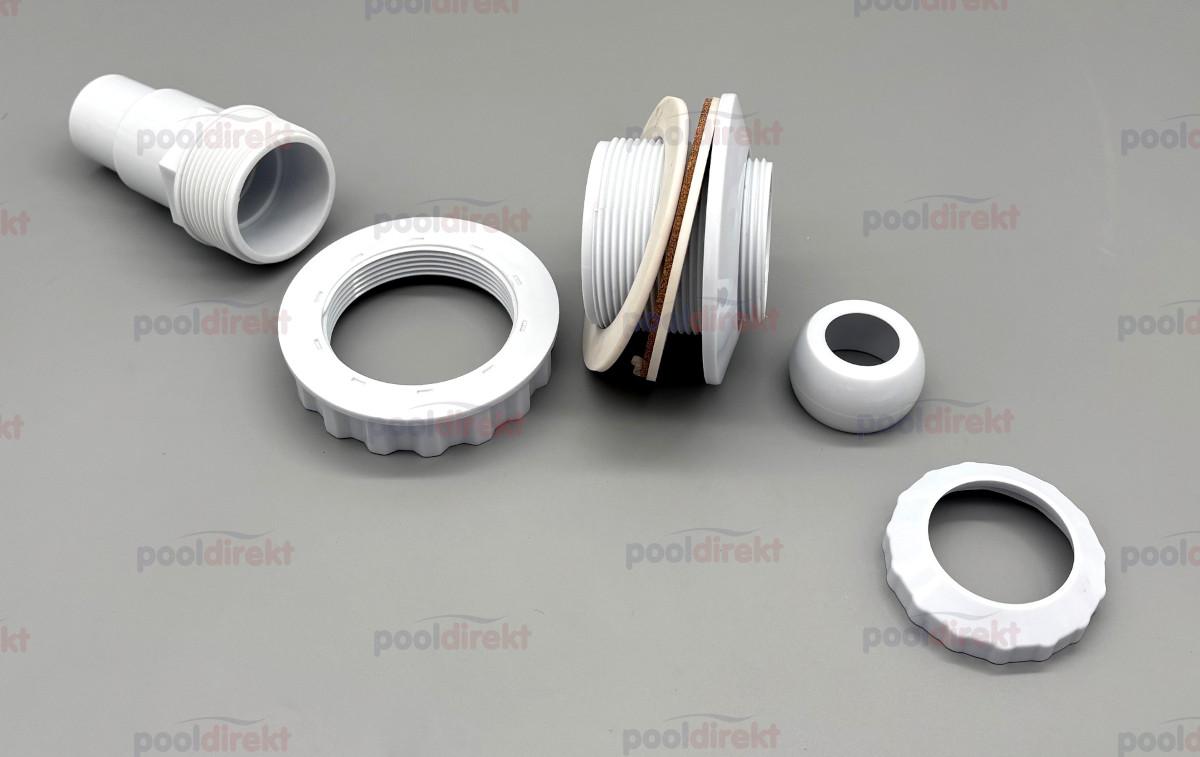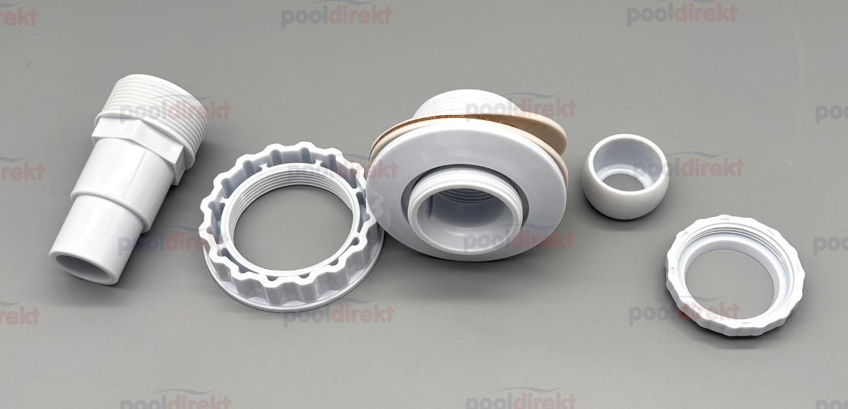 Einlaufdüse für Fertigbecken (Polyester, Stahlwand) mit Dichtungen.