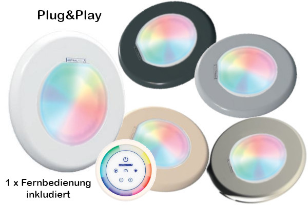 Komplett-Scheinwerfer Astral LumiPlus Flexi Plug&Play RGB mit 1 Fernbedienung.