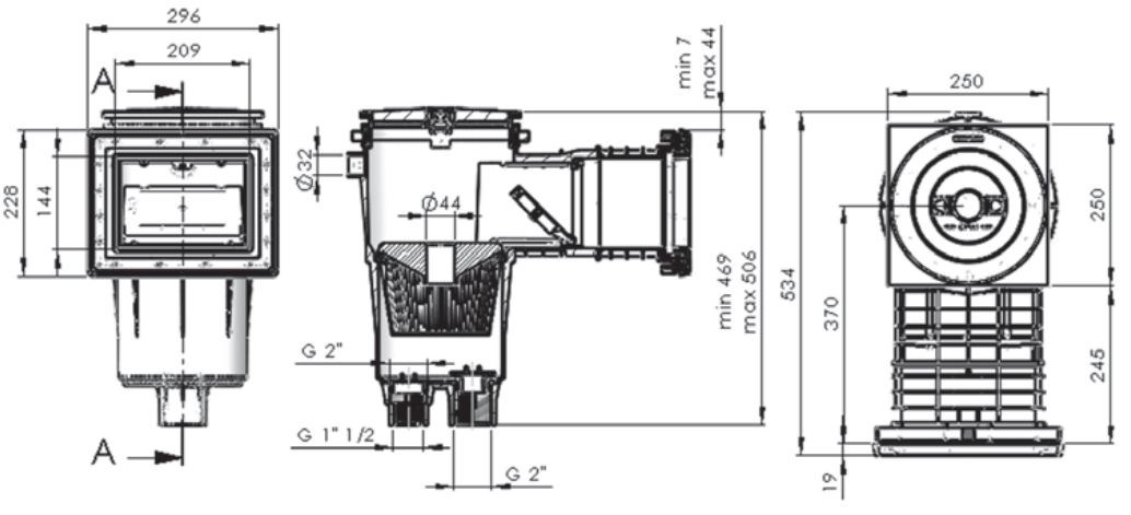 Anschluss: 1 1/2“ I.G. zum Filter 2“ I.G. vom Ablauf