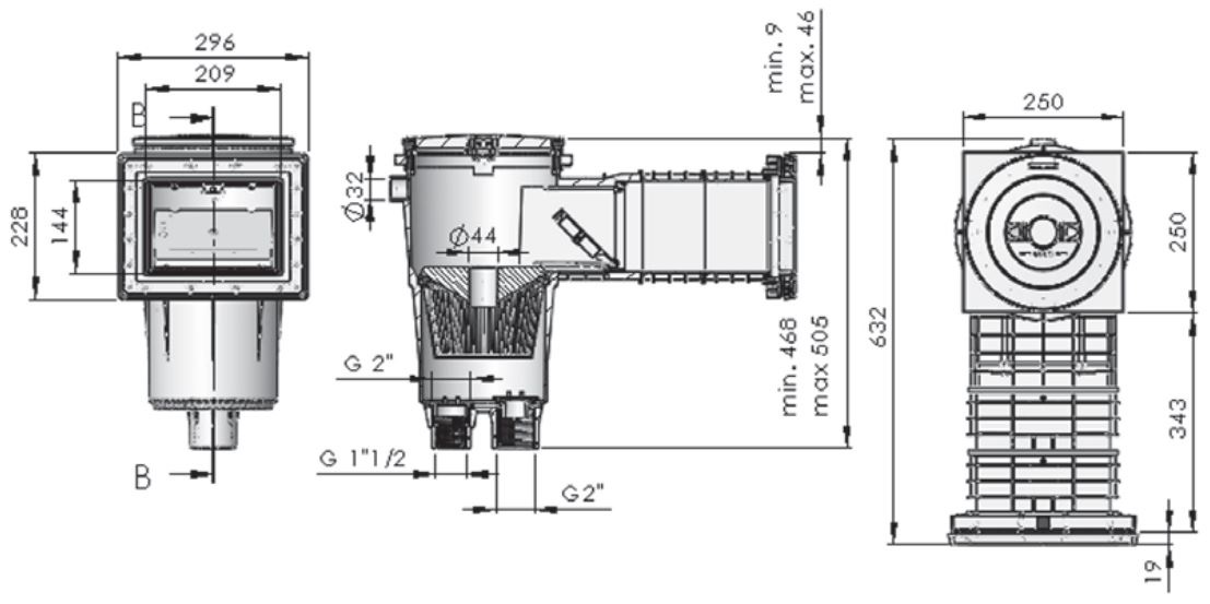 Anschluss: 1 1/2“ I.G. zum Filter 2“ I.G. vom Ablauf