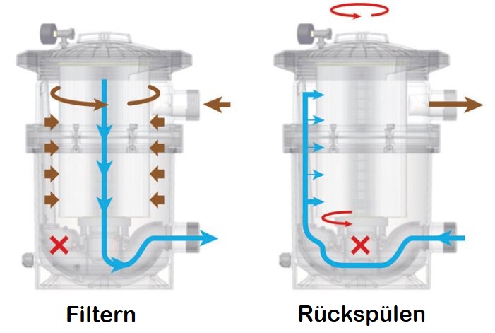 Rückspülen des Filters wird praktisch die gleiche Durchflussmenge erzielt.
