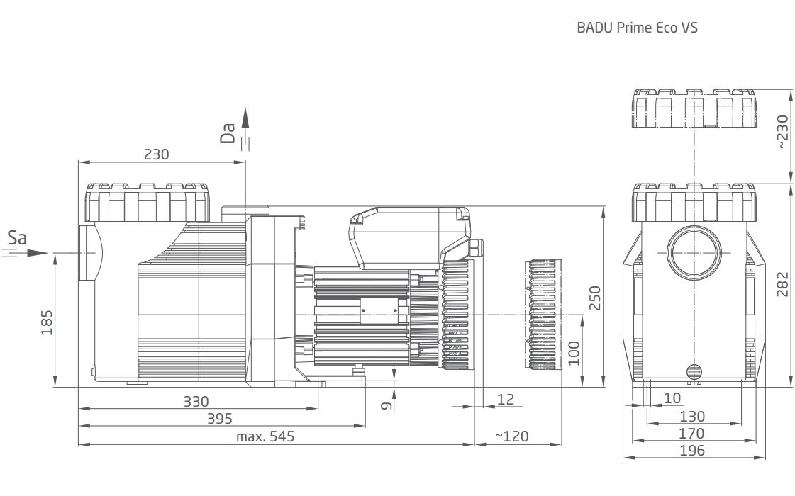 Die selbstansaugende Umwälzpumpe BADU Prime Eco VS vereint die erfolgreiche Konstruktion der BADU Prime mit einem Synchron-Kompaktantrieb zu einem hocheffizienten, leistungsstarken Kraftpaket. Dank integrierter Bauweise ist sie äußerst platzsparend und ideal für Becken mit einer Größe von 30 bis 90 m³. Per integrierter Leistungselektronik ist die Pumpe in ihren Parametern variabel programmierbar und birgt damit Energie-Einsparmöglichkeiten. Das Motordisplay sorgt als bewährtes Bedienteil für unkomplizierte und intuitive Handhabung. Die logische Menüführung folgt dabei ganz dem Motto „keep it simple“. Potenzialfreie Kontakte sorgen zudem dafür, dass Off-Funktion und Drehzahlen auch von extern über die Pumpen-Fernsteuerung BADU Eco Logic ansteuerbar sind.