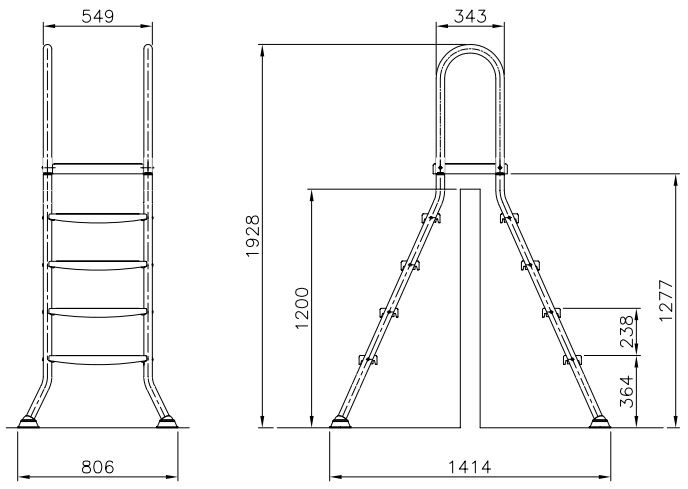 Produktinformationen "Edelstahl-Aufstellbeckenleiter D 43 V2A"