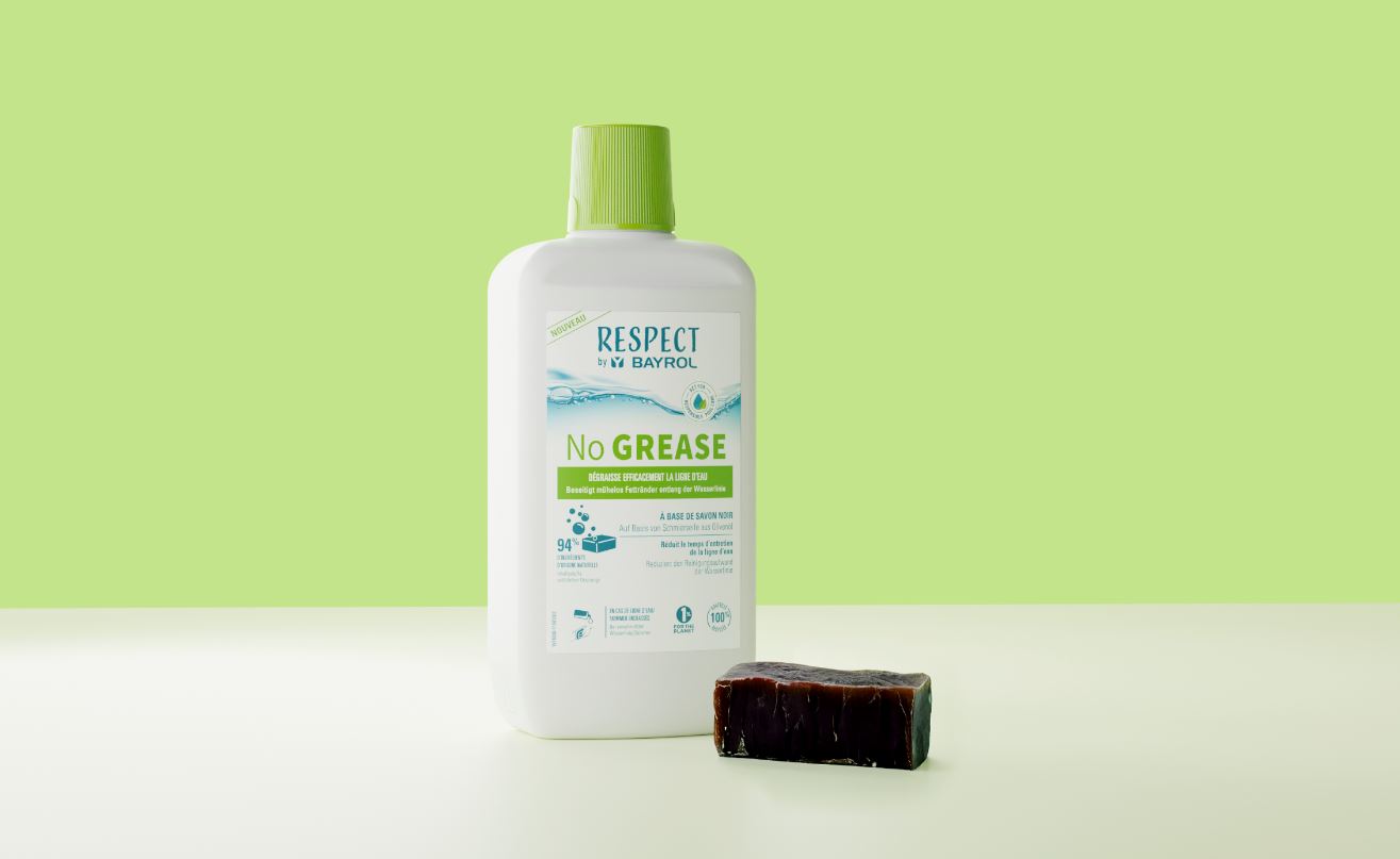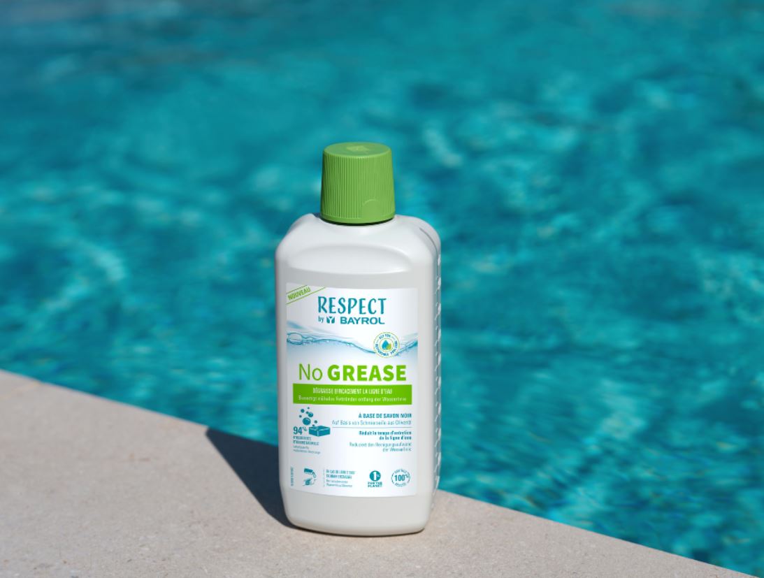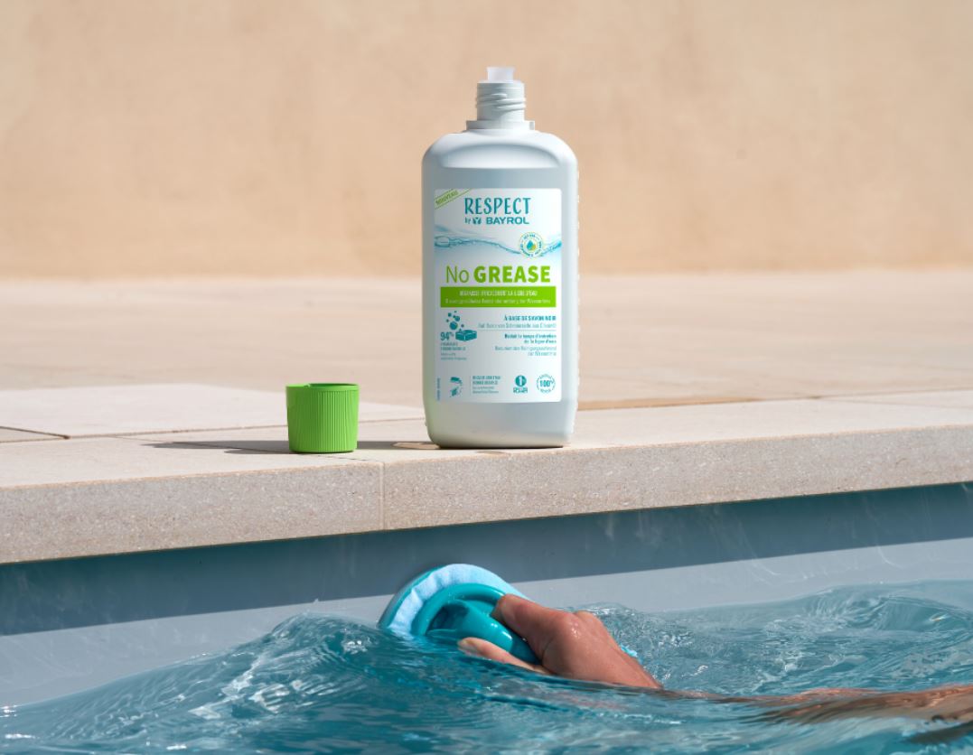 No GREASE entfettet wirksam Wasserlinie und Skimmer und entfernt Fettablagerungen, die von Badegästen, Rückständen von Sonnencremes und -ölen oder der Luftverschmutzung verursacht werden.
