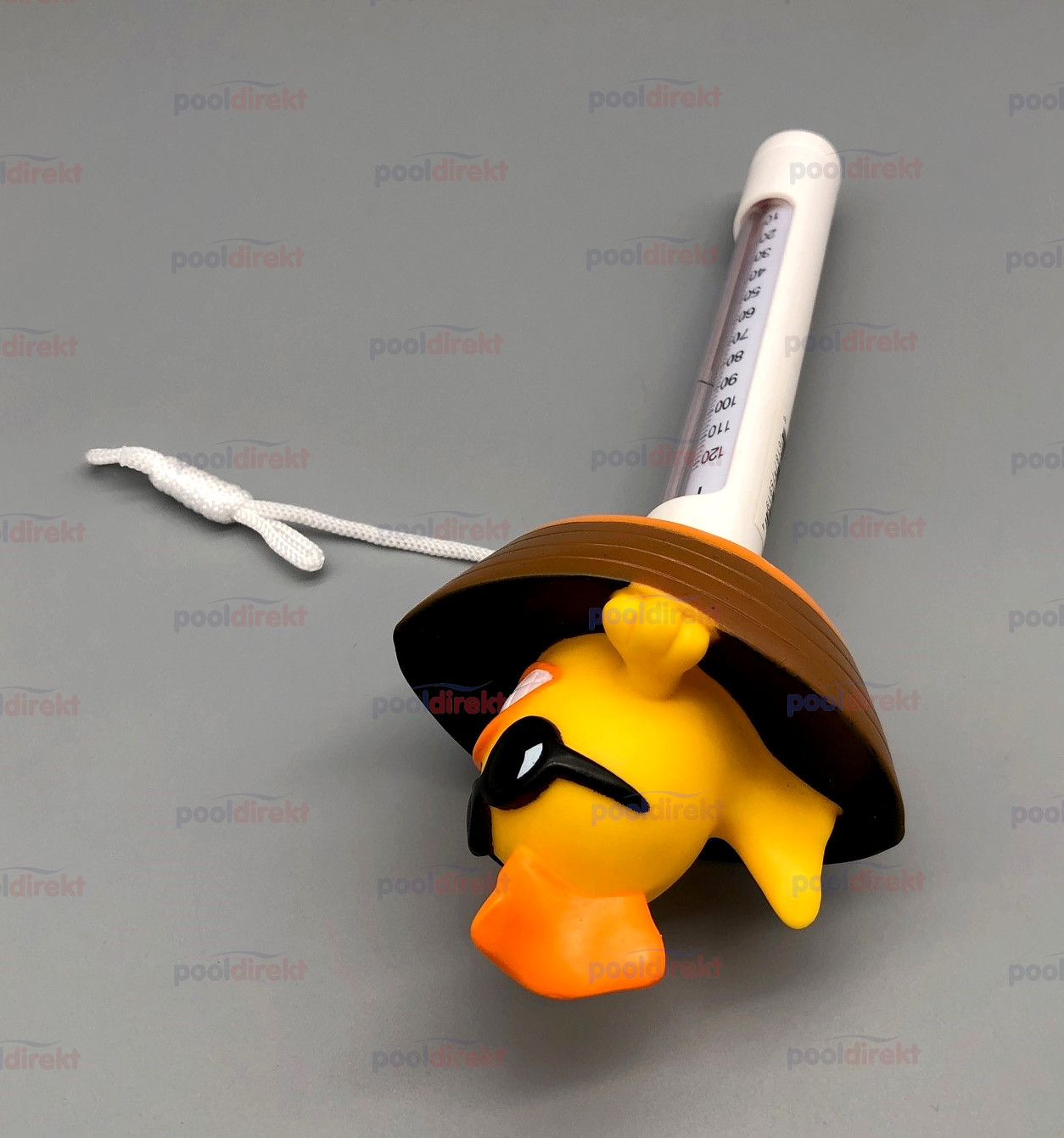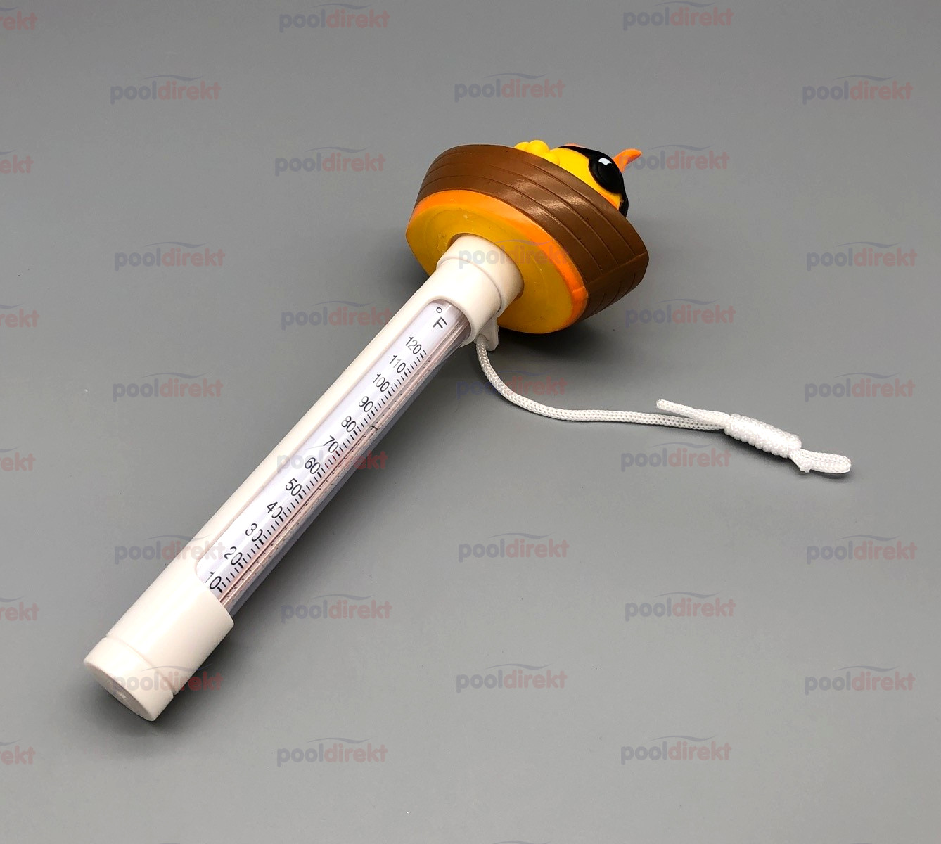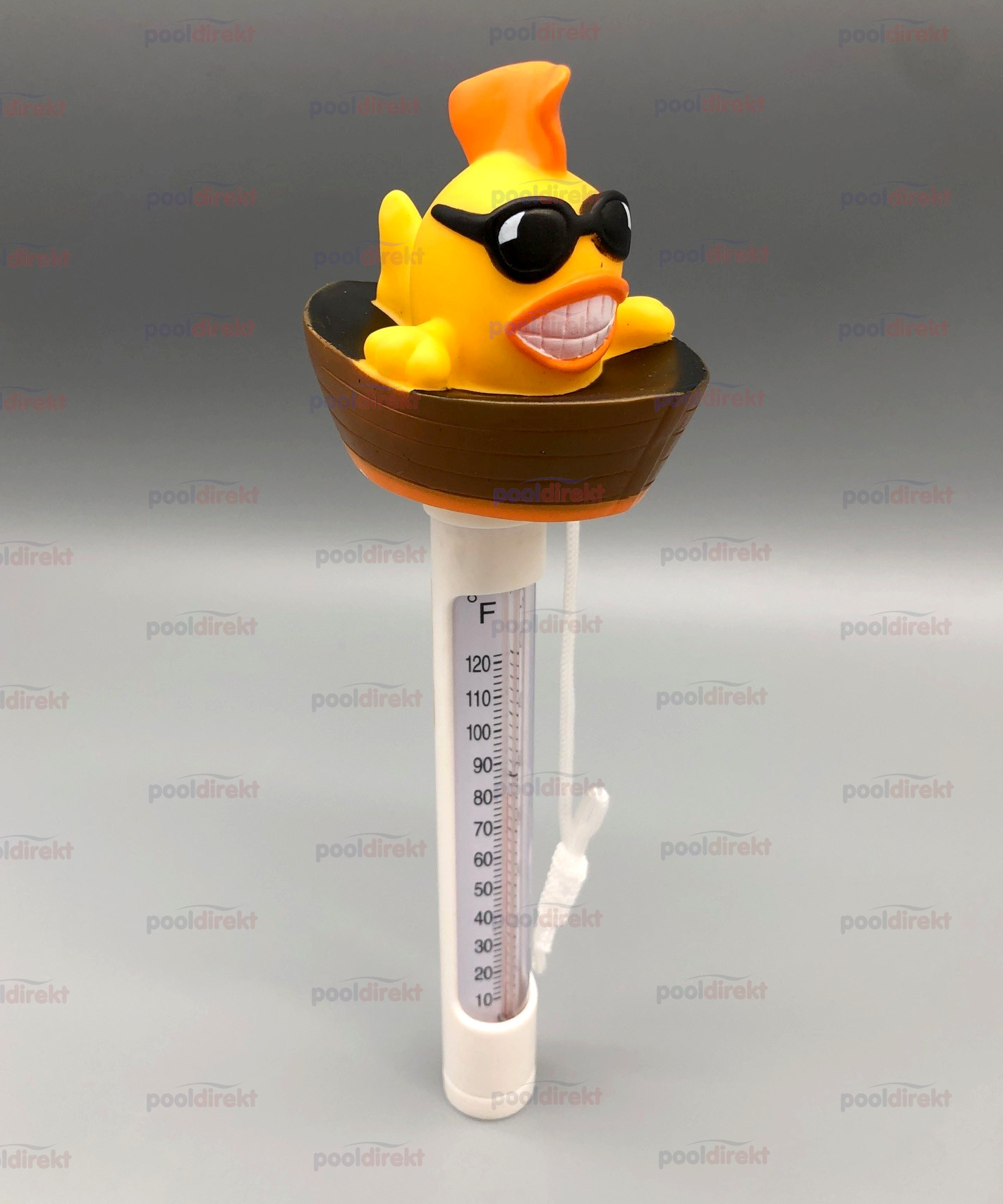 Pool-Thermometer mit Fisch in einem Boot inkl. Befestigungskordel, salzwassergeeignet.