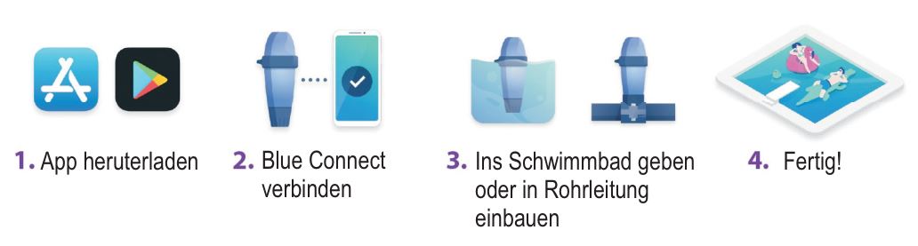 Überwachen Sie Ihren Pool rund um die Uhr mit dem Blue Connect Poolanalysegerät und der kostenlosen Blue Connect App. Blue Connect erfasst die genauen Werte Ihres Pools und benachrichtigt Sie, wenn eine Anpassung notwendig ist. Sie erhalten eine Schritt für Schrittanweisung, welche Pflegemittel hinzugefügt werden müssen, um eine optimale Wasserqualität zu erreichen.