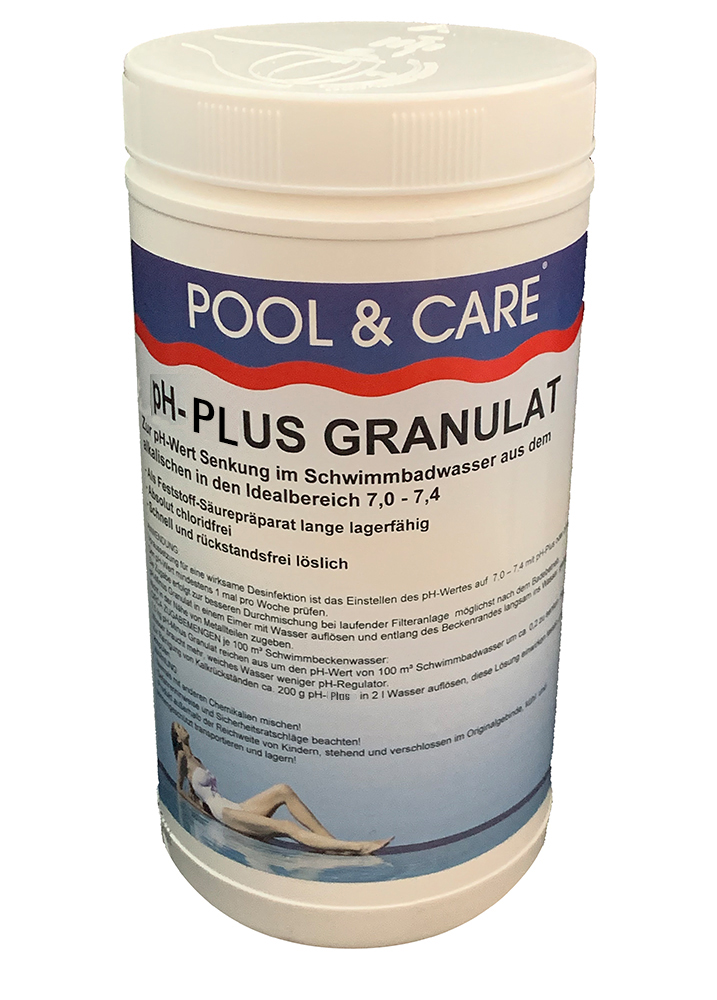 pH-Plus Granulat zur manuellen pH-Wert Anhebung des Schwimmbadwassers im Pool, Swim Spa oder Whirlpool aus dem sauren in den Idealbereich 7,0 - 7,4.
