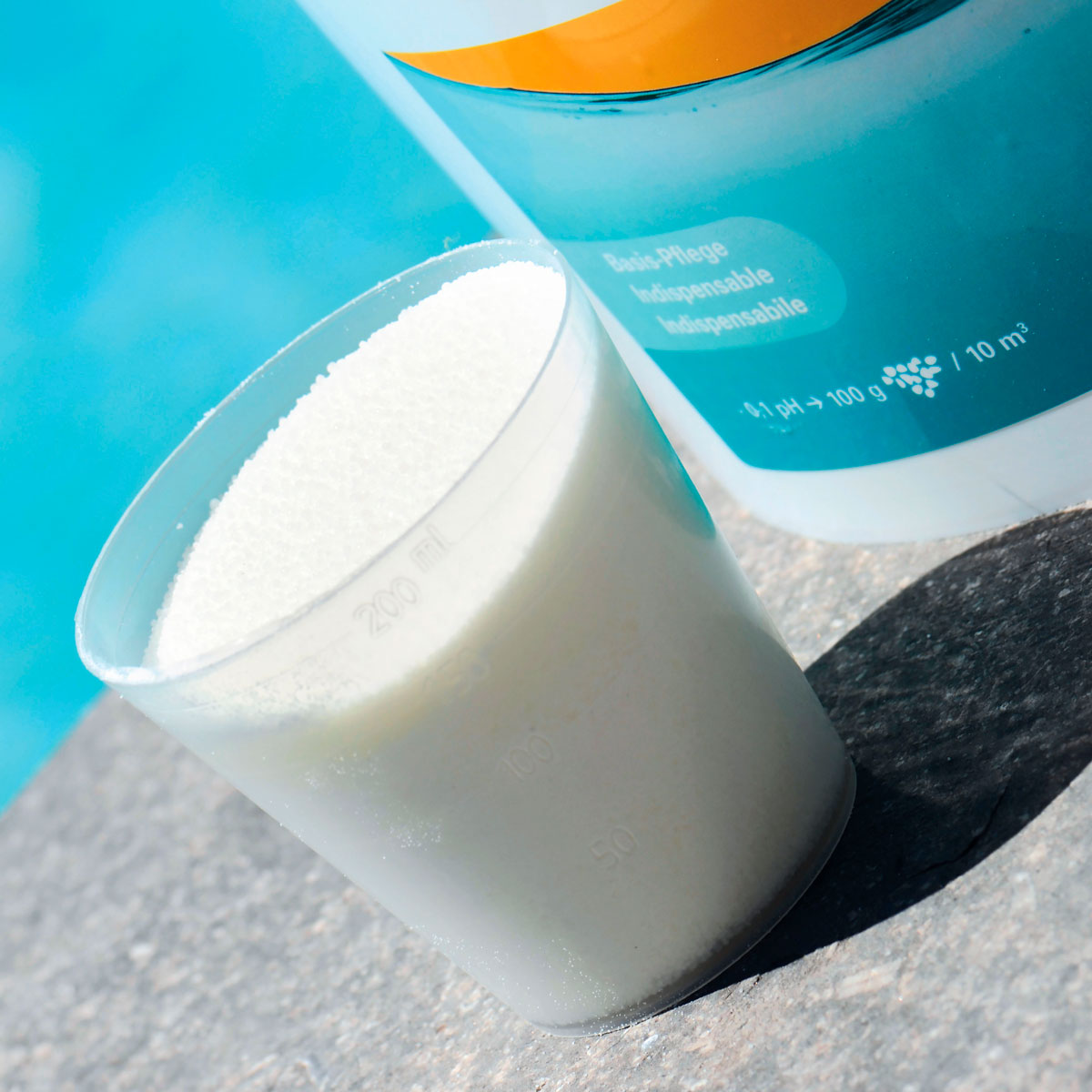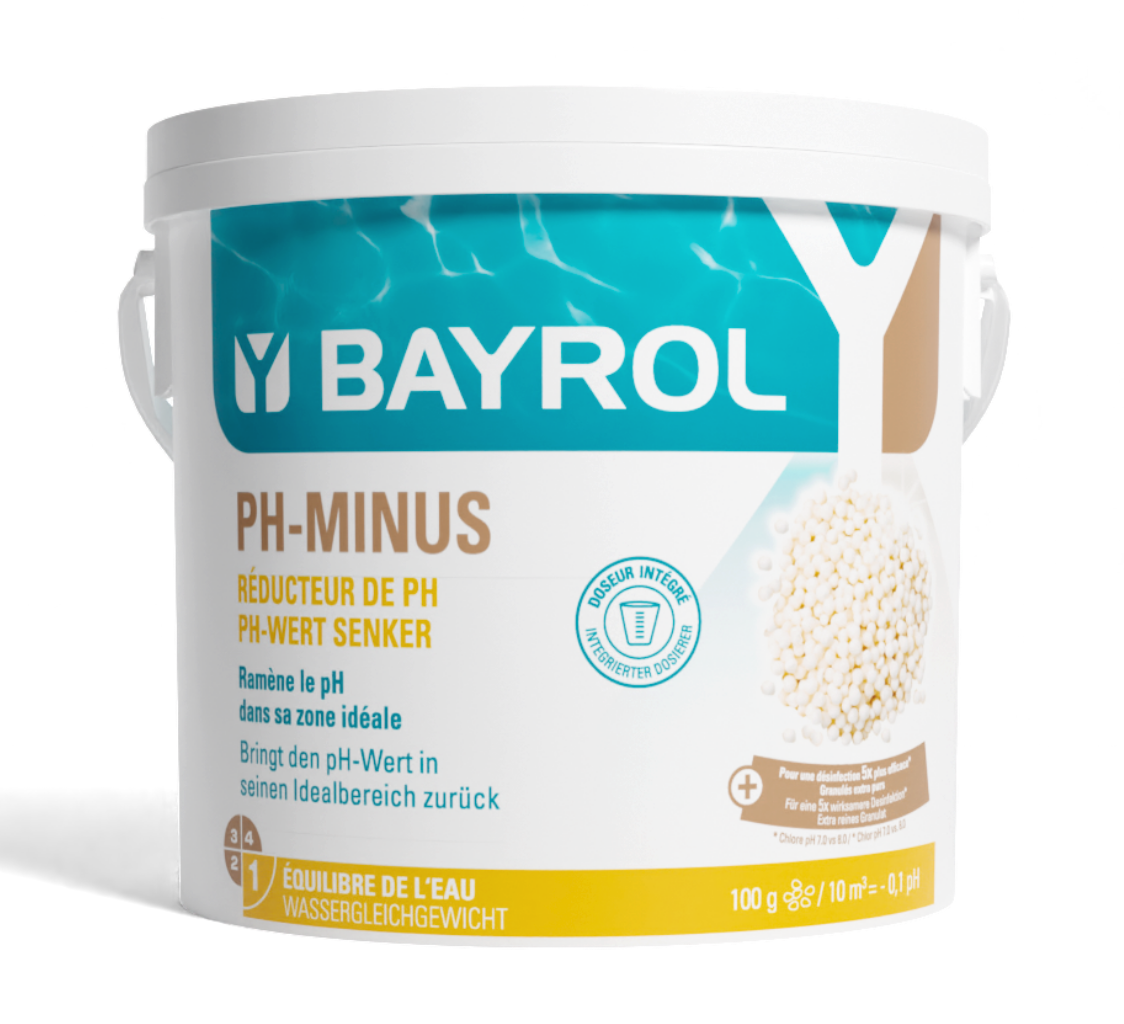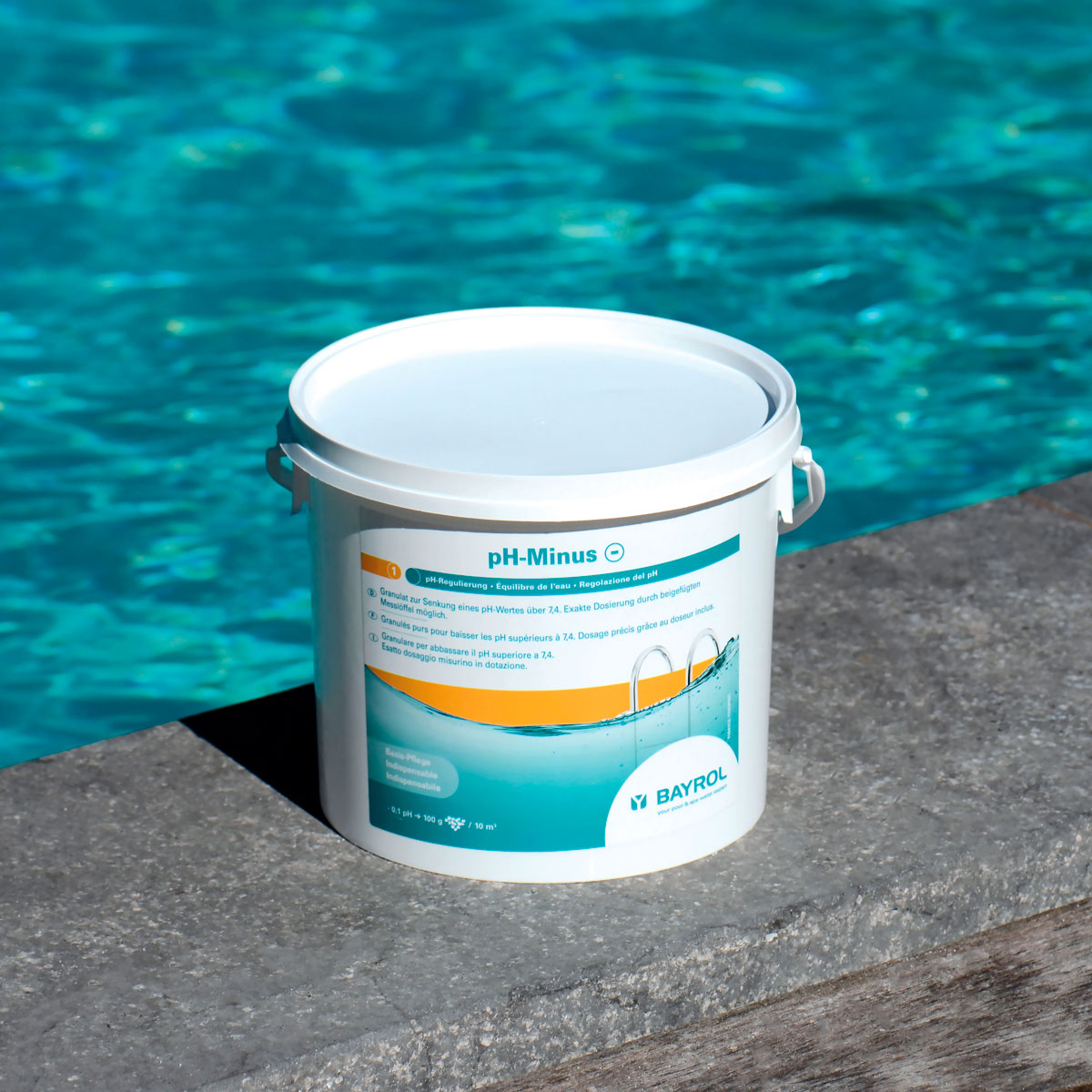 Tipp: Der pH-Wert ändert sich sofort nach der Auflösung des Pulvers. Überprüfen Sie daher zwischendurch die Senkung des pH-Wertes mit BAYROL-Teststreifen oder dem BAYROL-Pooltester.