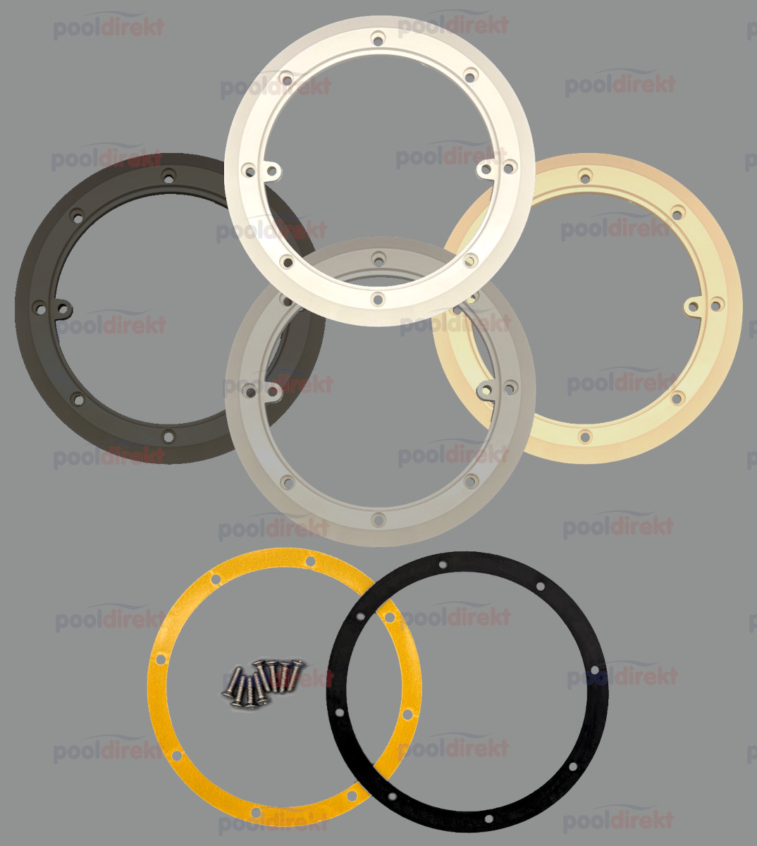 Flansch mit 2 Dichtungen, Flanschschrauben in 4 Farben für den Astral KS Bodenablauf als Ersatzteil. Der originale Deckel passt nicht in den Ersatzteil-Flansch, bestellen Sie daher den Deckel dazu - siehe Zubehör! Achten Sie auf die Nummer auf der Rückseite: 01467-0001.
