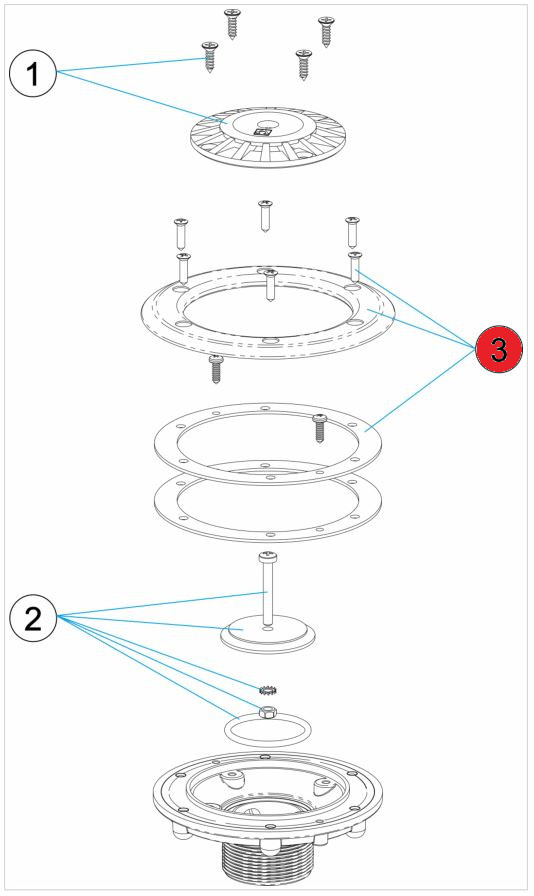 Astral Flansch, 2 Dichtungen und 6 Schrauben für Bodeneinlaufdüse. Passt für die Düsen 00340, 20139, 11584.