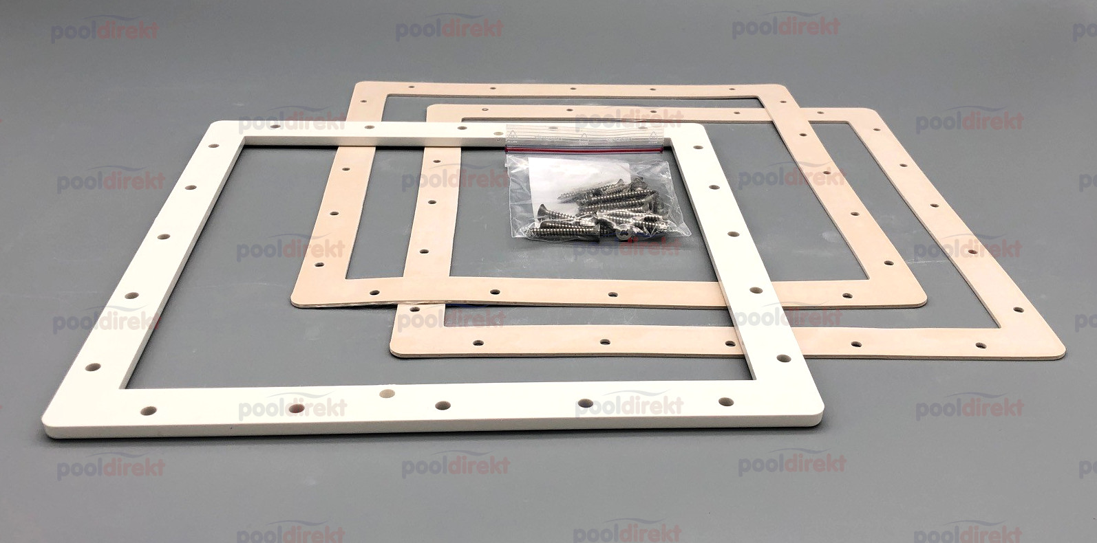 Ersatzteil-Paket passend für OWM Kunststoff Scheinwerfer eckig (für Folien- und Fertigbecken) bestehend aus Flansch, 2 Dichtungen und 20 Schrauben.