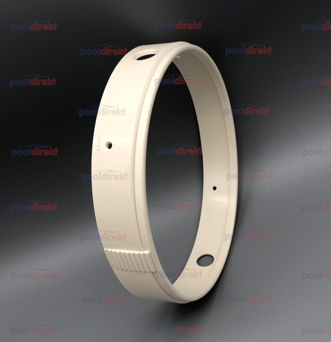 Birnenring in cremeweiß als Ersatzteil zum MTS Unterwasserscheinwerfer. 2 große Löcher zum Einrasten in die Blende (rund oder quadratisch), Rippen gegenüber zum Verstellen des Winkels, 4 kleine Löcher zum Einhängen des Federbügels.