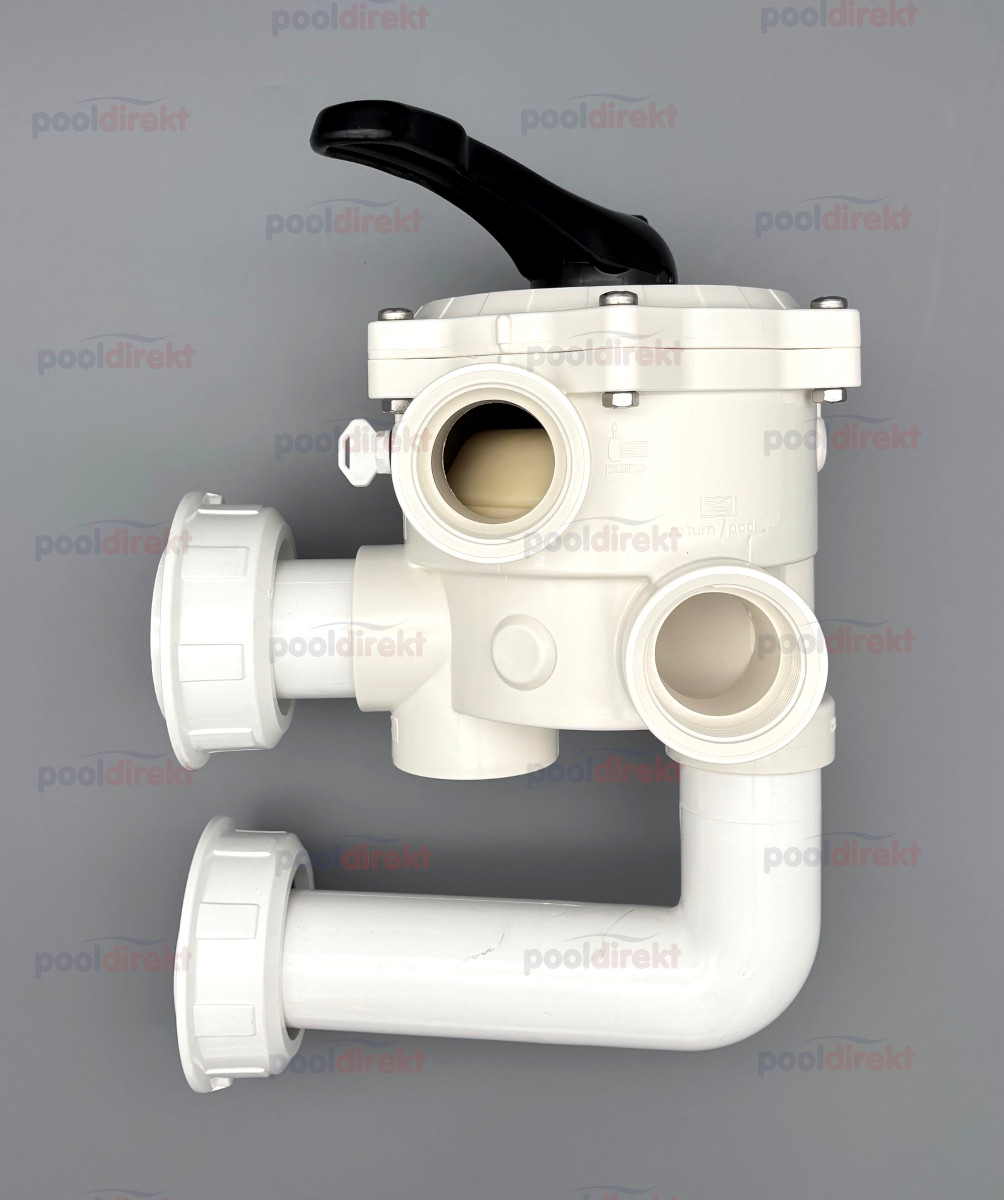 Praher Side Mount 6-Wege-Ventil V6 ND SM10 mit passendem Verrohrungs-Set für alle Astral Filterkessel (Rohrabstand 125 mm).