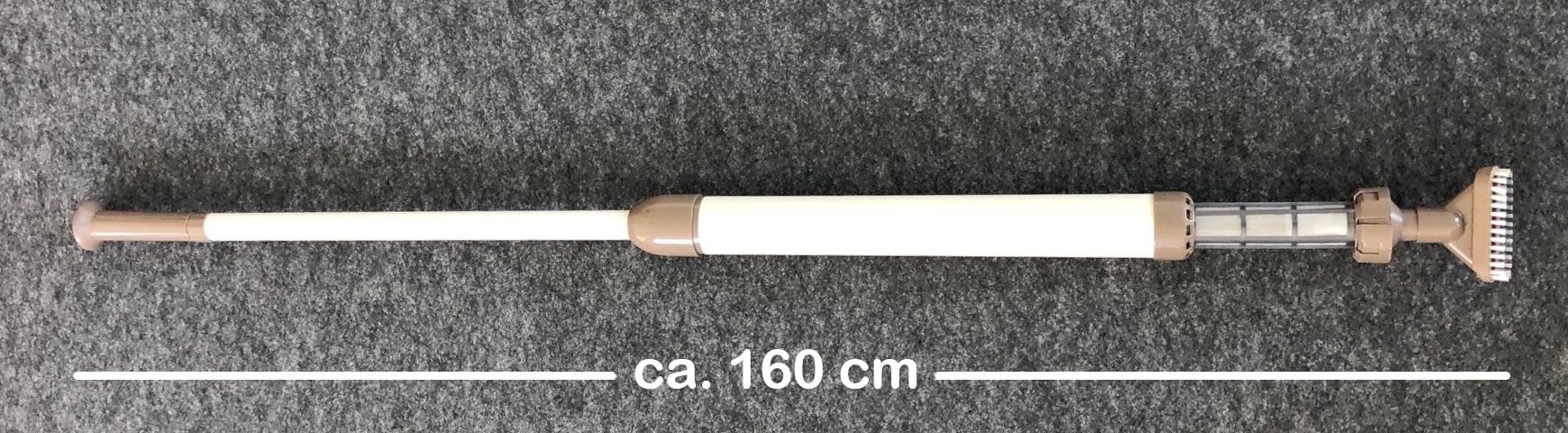 Laubnetz (feinmaschiger Kescher, auch für Insekten) und Wandhalterung sind im Lieferumfang enthalten. Länge zusammengebaut ca. 160 cm.