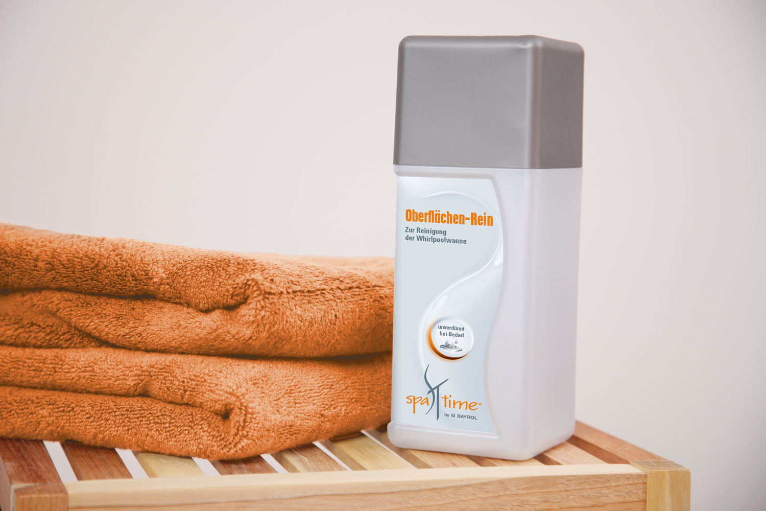 SpaTime Oberflächen-Rein löst Ruß und fettigen Schmutz an der Wasserlinie und in der Whirlpoolwanne. Oberflächen-Rein eignet sich für die einfache Reinigung der gesamten Whirlpoolwanne. Die spezielle Rezeptur wirkt besonders gegen Schmutz- und Fettränder. Das Reinigerkonzentrat ist mit allen Desinfektionsmethoden kompatibel.